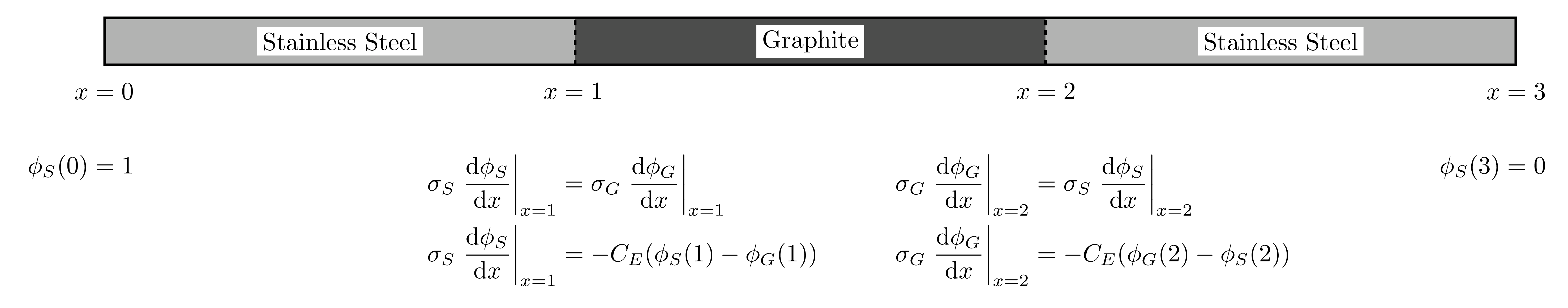 Now our determined coefficients can be combined to form the complete solutions for both stainless steel and graphite. To summarize, the derived analytical solutions for each domain given the boundary and interface conditions described in Figure 1 is: