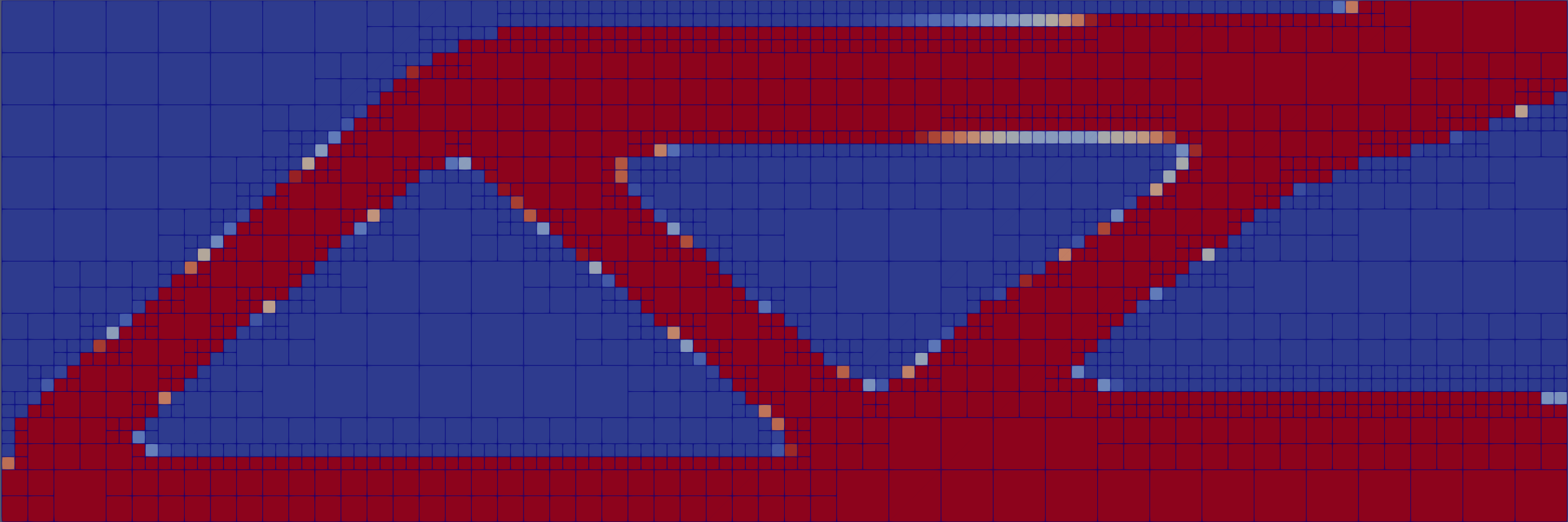 An example problem illustrating 2D topology optimization with the use of PDE Filter and Adaptive Mesh Refinement.