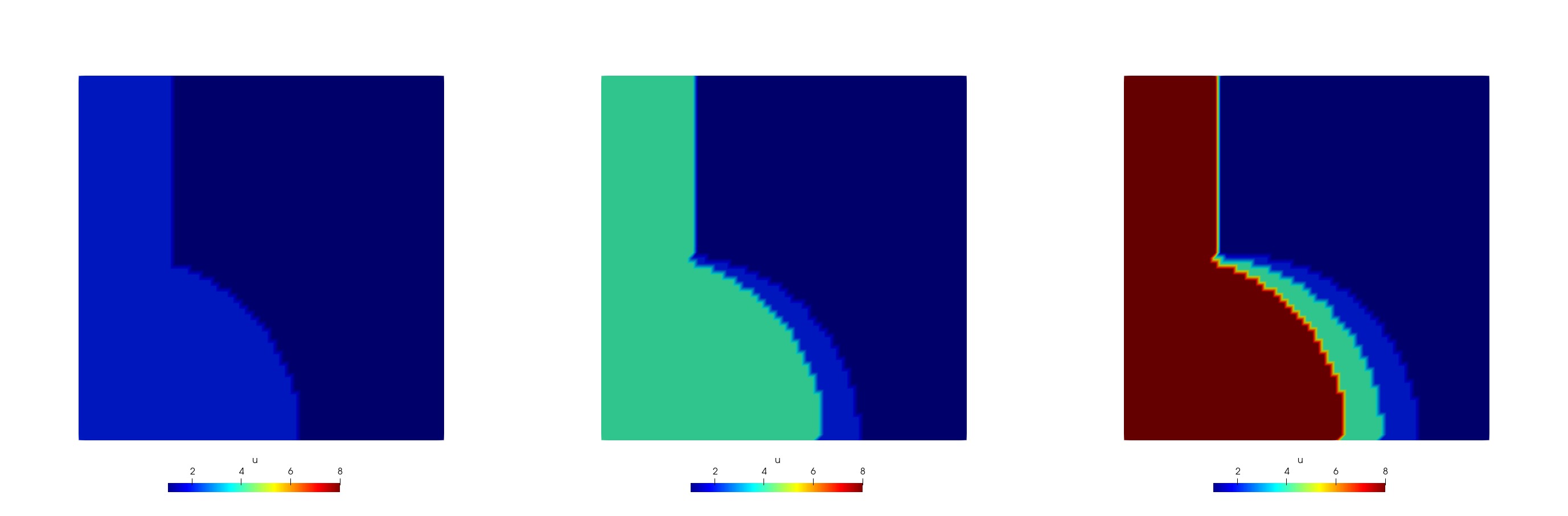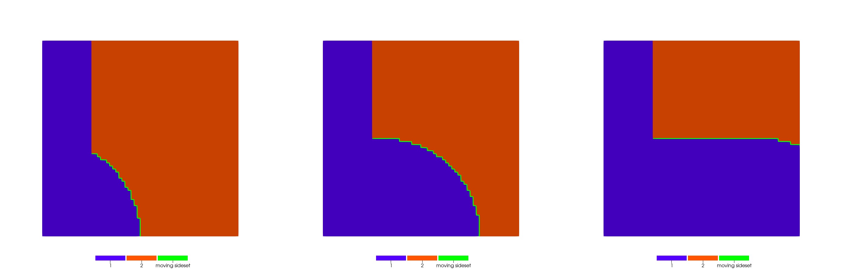 The evolving sideset (green) at three different time steps